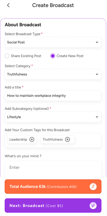 - Mass Broadcast- to announce, gather crowdfunding, update, motivate, invite, etc. millions of people at once